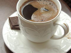 Начало дня с кусочком шоколада и чашечкой кофе.