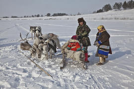 Хантыйская семья возле оленьей упряжки