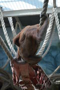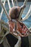 Monkeys in the Buddhist temple meet visitors and parishioners