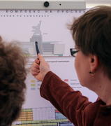 Обсуждение технических специалистов. Сотрудники компании в белых касках.