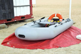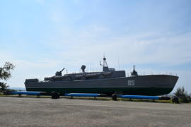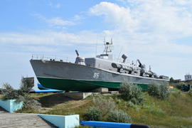 Лодка несется по морю.  Пейзаж в вечернее время.