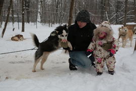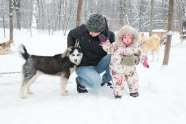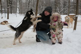 Папа Дмитрий Кухарчук с двухлетней дочерью Светланой Кухарчук и молодым хаски по кличке Верный