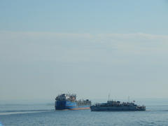 Россия. Самара. Грузовой и пассажирский пароход на реке Волга