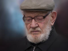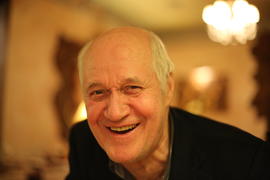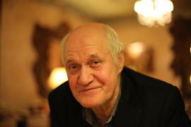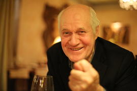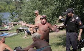 Сержант Андрей Зимин успокаивает выпившего пенсионера