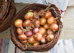 Репчатый лук в плетенной корзине