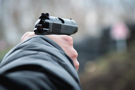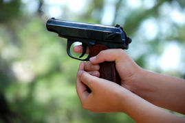 Черный пистолет в музей под открытым небом. Антикварное оружие пистолеты