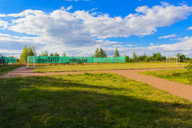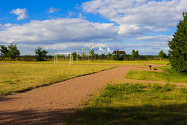Football field on the lake in a recreation area