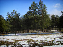 Проталины в снегу возле вентиляционной вытяжки инженерных подземных коммуникаций
