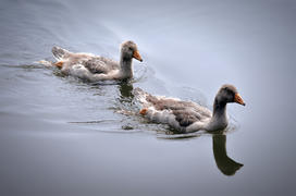 Два серых гуся плывут по речке