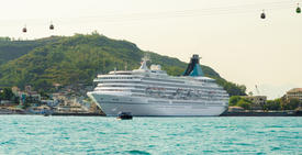 Большой белый круизный корабль в порту