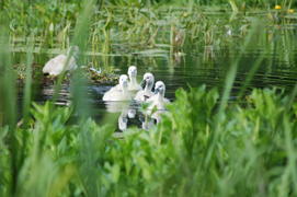 Семейная пара и женщины с детскими коляскам в Московском парке Тропарево