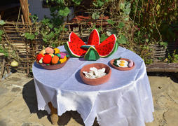 Благодарственные записи посетителей на фоне сувенирных бочек