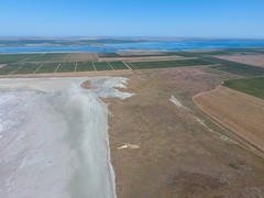 Виноградники возле соленого озера. Вид сверху.