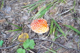 Красный мухомор в сосновом лесу