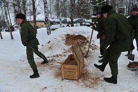 6-я бригада ПВО. На снимке: военнослужащие и ящик с песком.