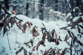 Снег на сухих листьях