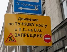 Санкт-Петербруг. Указательный знак на желтой вывеске