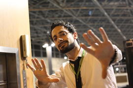 Маленький мальчик с широкими и удивленными глазами закрывает рот