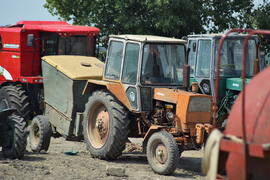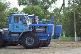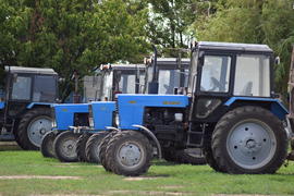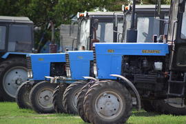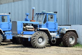 Russia, Temryuk - 15 July 2015: Tractor, standing in a row. Agricultural machinery. Parking of agric
