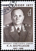 Почтовая марка СССР, 1977 год. Герой Великой Отечественной войны маршал К.А. Мерецков