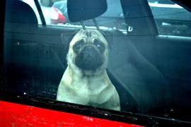 Оставленный в машине, тревожный, мопс...
