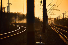 Железнодорожные пути на железнодорожной станции. Новая железная дорога.