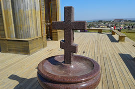 Православный крест из гранита возле часовни.