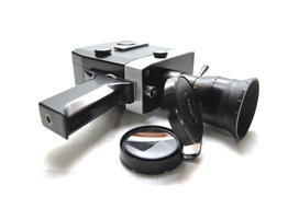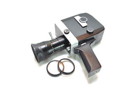 Старая кинокамера на белом фоне крупным планом