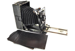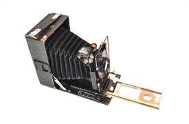 Старинная фотокамера на белом фоне крупным планом