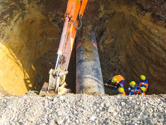 Работы по установки нефтепровода. Строительство нефтепровода.