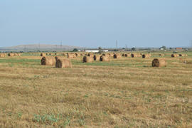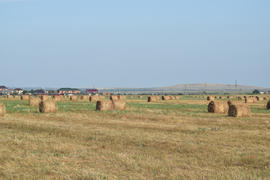 The Haystacks in the field. Summer haymaking