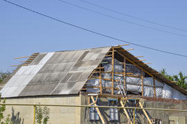 The roof of corrugated sheet. Roofing of metal profile wavy shape.